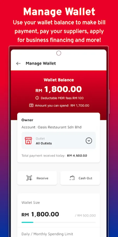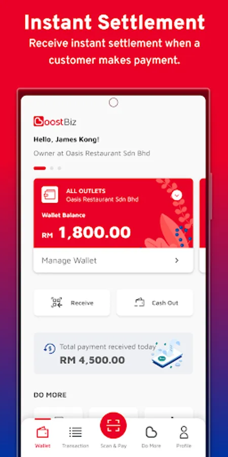 The new Boost Biz Merchant Wallet feature allows you to manage all your daily payment needs with ease. Receive payment instantly when a customer makes a payment, use the money to pay your suppliers or pay for your utility bills. One app for all your payment needs- Receive, Pay & Track all your transaction easily.