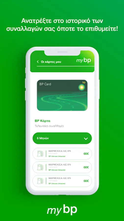 Look at your transaction history and see detailed information about your fuel costs, while at the same time you can browse the interactive map to locate the nearest bp service station that serves you.