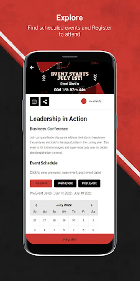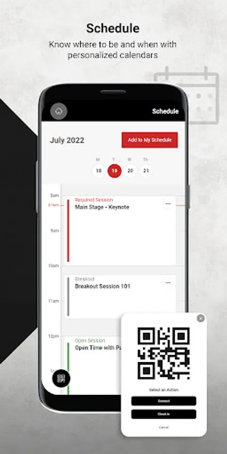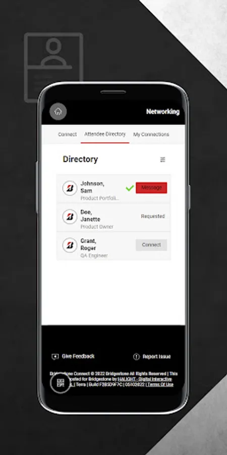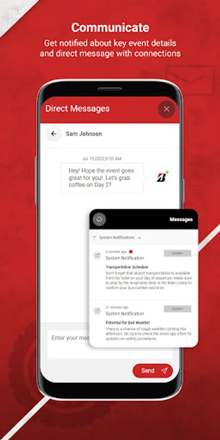 The Bridgestone Connect mobile App is your all-access pass to in-person events providing support for your event from start to finish. Track your schedule, check in to sessions, and network with your peers all in one place. Climb the leaderboard and compete for points with your fellow attendees by completing engagement activities throughout the event. Connect with exhibitors at vendor shows through in-person and digital interactions all while staying informed through the easy-to-use event messaging system.