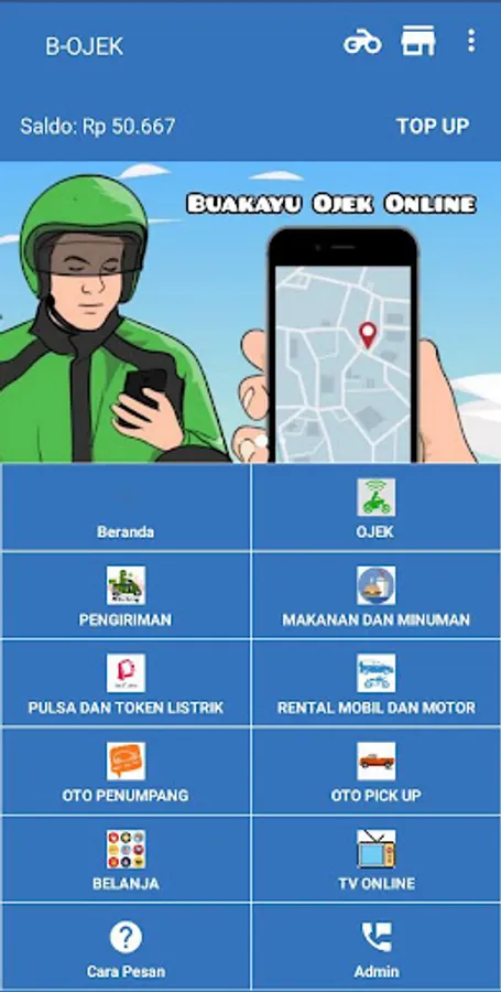 B-Jek (Buakayu Ojek) is an online transportation booking application, seller and online trade intermediary in the Districts of Bonggakaradeng and Rano. This application was developed by PT. LOCAL MEDIA WORKS.