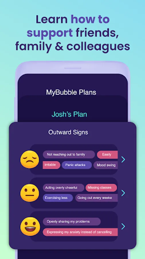 When we get stuck in a rut, it can feel impossible to reach out for help. With MyBubble mood indicators, you can understand the outward behaviors your family members exhibit when theyβre feeling Good, Meh and Bad.