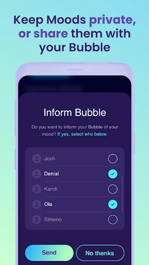 Build your mental health support Bubble. Become more connected with your family. Find out when someone you love is feeling down - and learn how to spot when they need more support. MyBubble makes it easier to get help at the times when itβs hardest to ask.