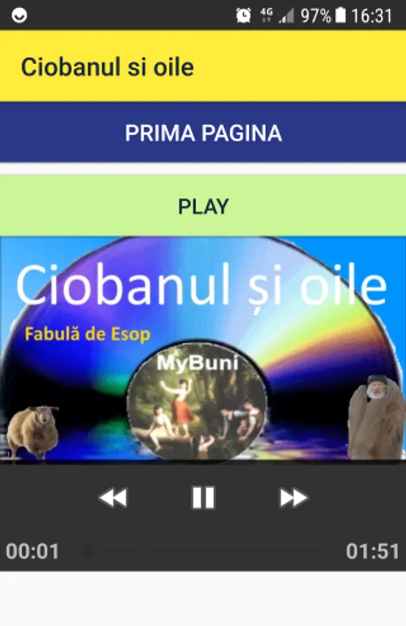 The application includes a set of two fables in video and sound format: The Raven and the Fox, the Shepherd and the Sheep.