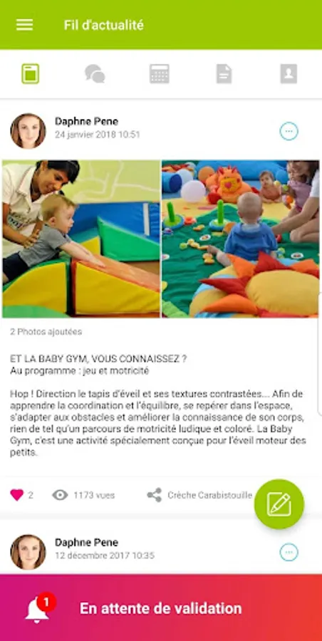 Parents can find different content posted by the teams: useful information, menus, calendar, appointments, photos, videos, in short everything that allows to better understand the educational project or to stay informed during a given period.