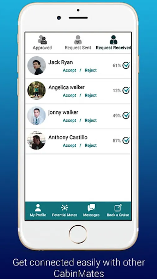 * The app automatically compares your profile with all other profiles to show you the compatibility score of other potential CabinMates.