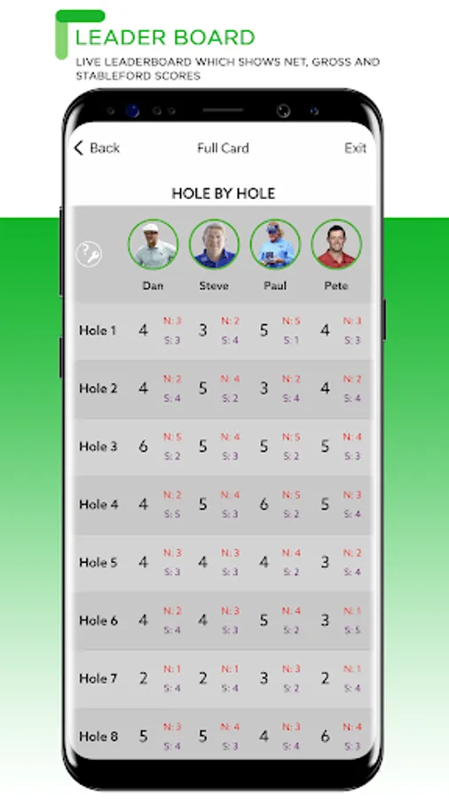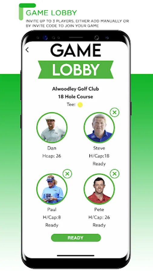 Score up to 4 players on your device, you can add manually or send a unique game code so they can score on their own device but track the leader board as the scores are entered.