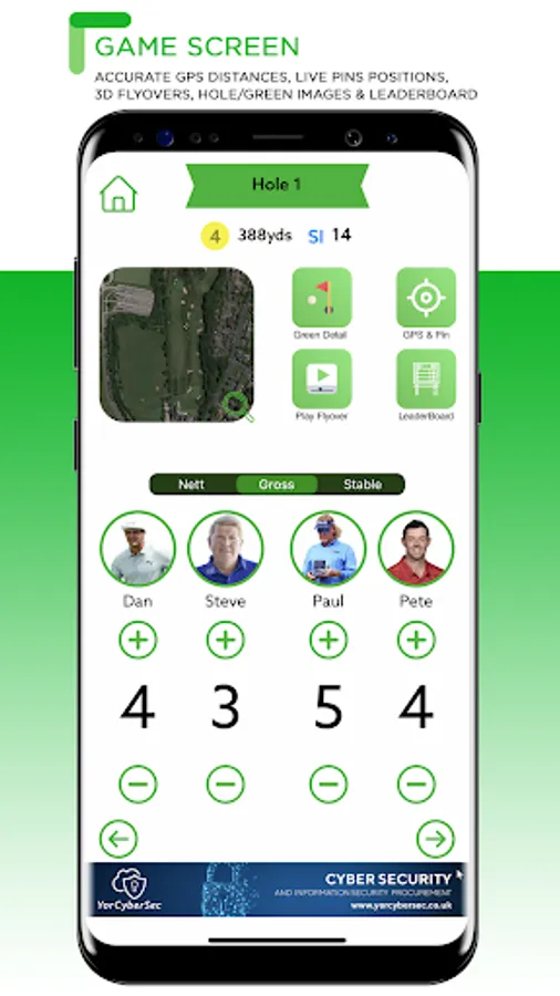 Multiplayer Scoring, Accurate GPS Distances, High Quality 3D Flyovers, Pin Positions and Detailed Hole & Green images on golf courses across Europe.