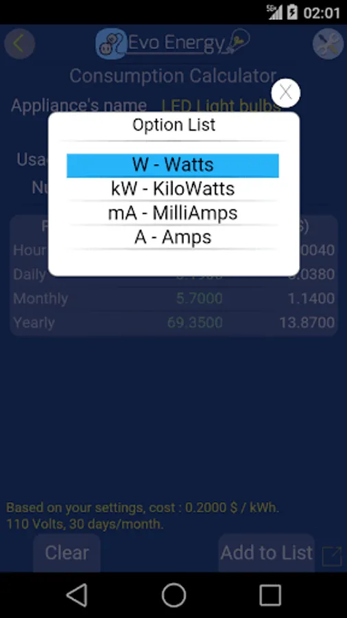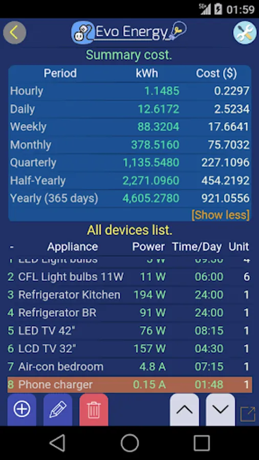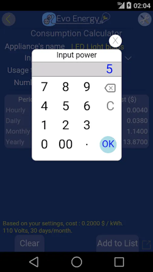 EvoEnergy - The easy to use energy consumption calculator that helps you to calculate your household electricity cost for running various electrical appliances or devices. And helping you save power consumption costs.