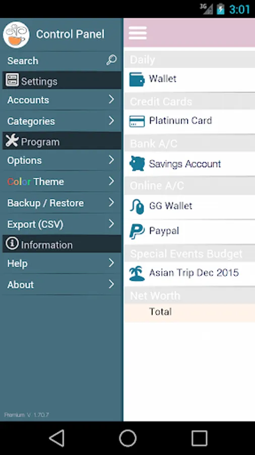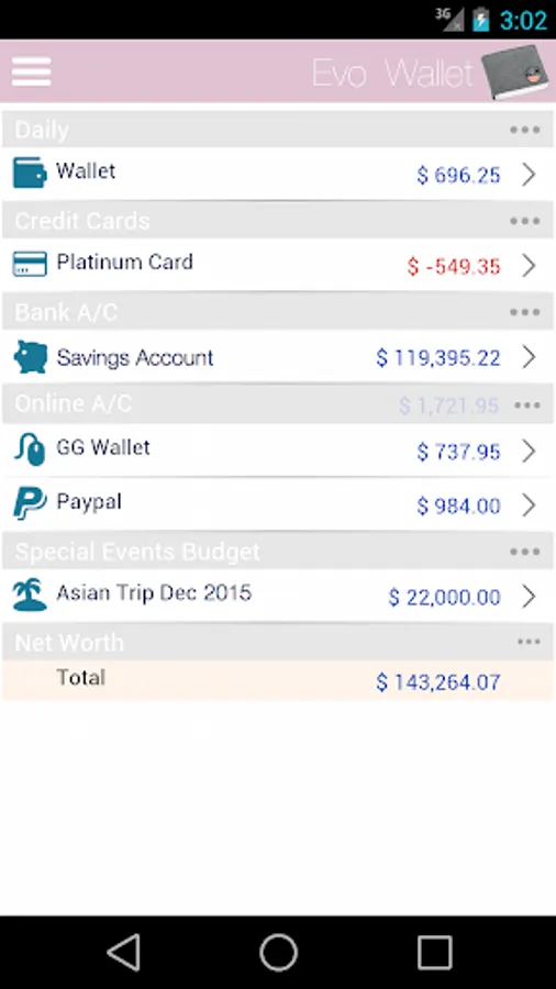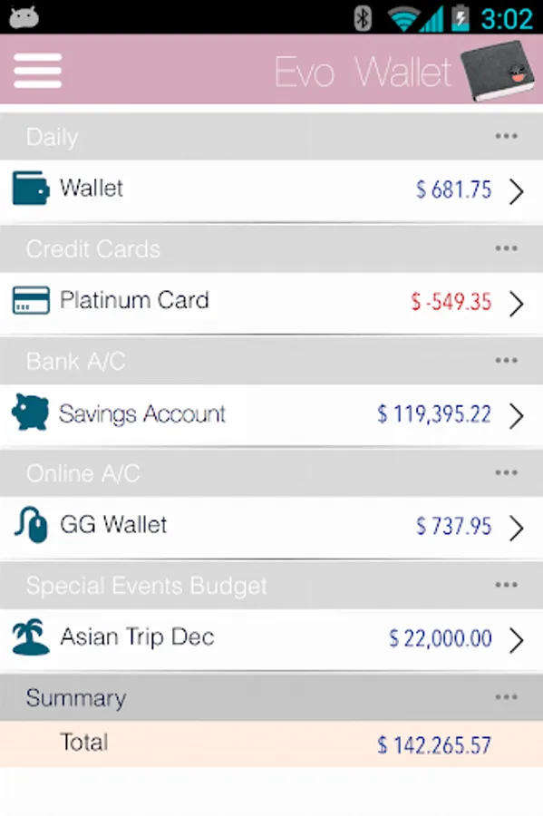 "EvoWallet" - Premium Edition, the easy to use personal finance application for android touch phone designed to help for keep track of the balances of all of your money accounts on the go.