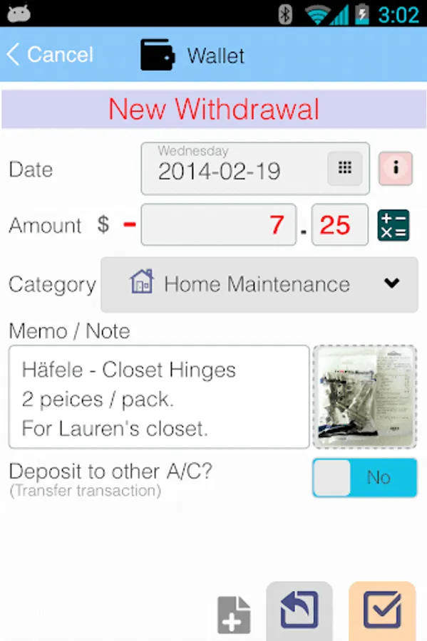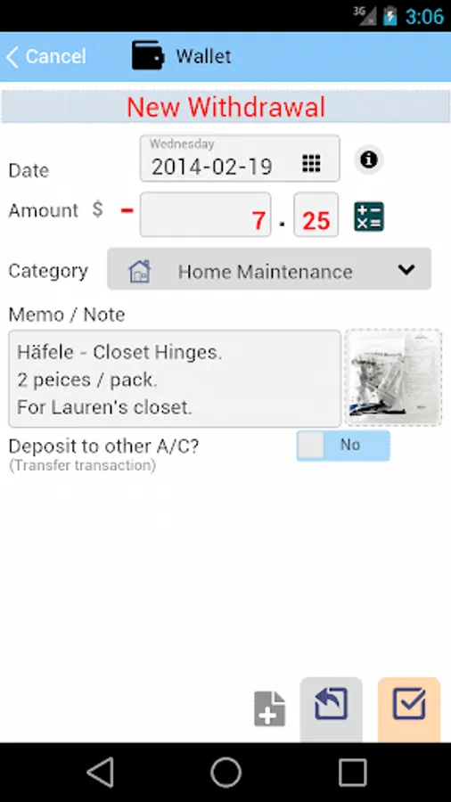 - You can take a picture of the transaction related thing, such as receipt, goods, etc...