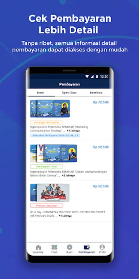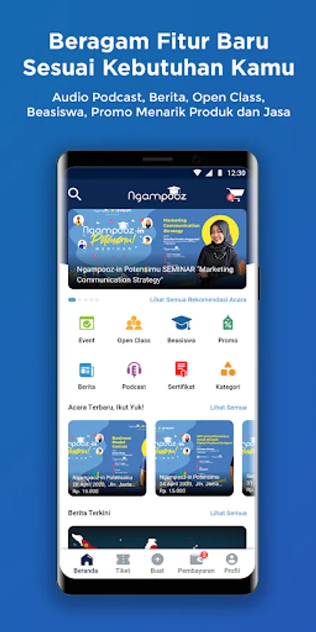 Aplikasi yang membantu mahasiswa untuk mendapatkan informasi seminar, workshop, dan sertifikasi kampus. Aplikasi ini memiliki fitur :