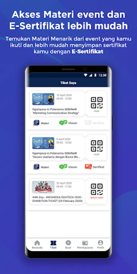3. Elektronik Sertifikat yang memudahkan partner dalam distribusi Sertifikat ke peserta acara, sertifikat dapat dilihat dari dashboard pengguna.