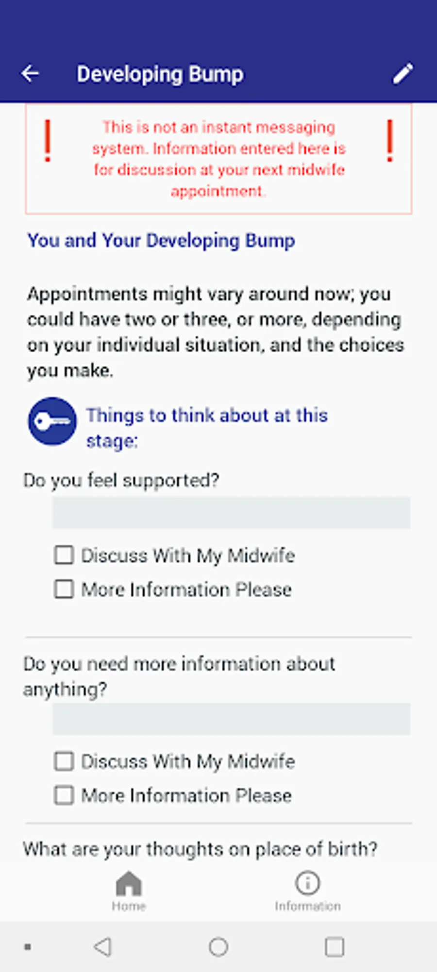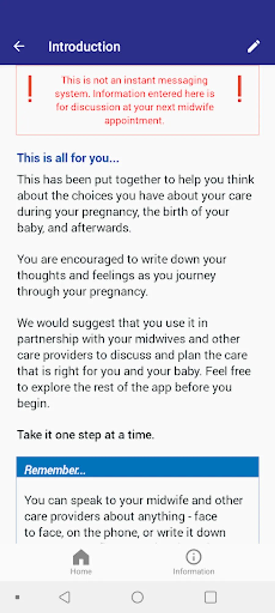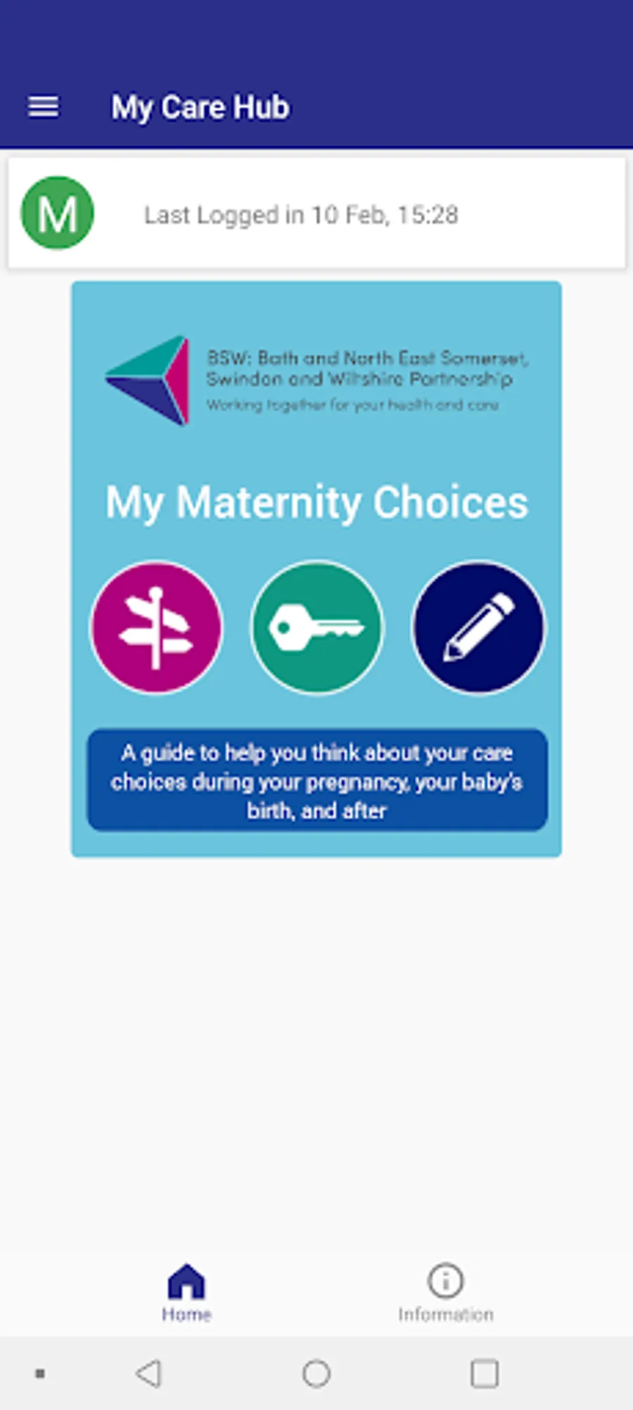 My Care Hub has been designed to use across Bath & NE Somerset, Swindon & Wiltshire for pregnant women/birthing people. It provides a simple way to record your feelings and thoughts for discussion with your midwife. Together you will plan your pregnancy care. This app will also signpost you to important websites/ resources.