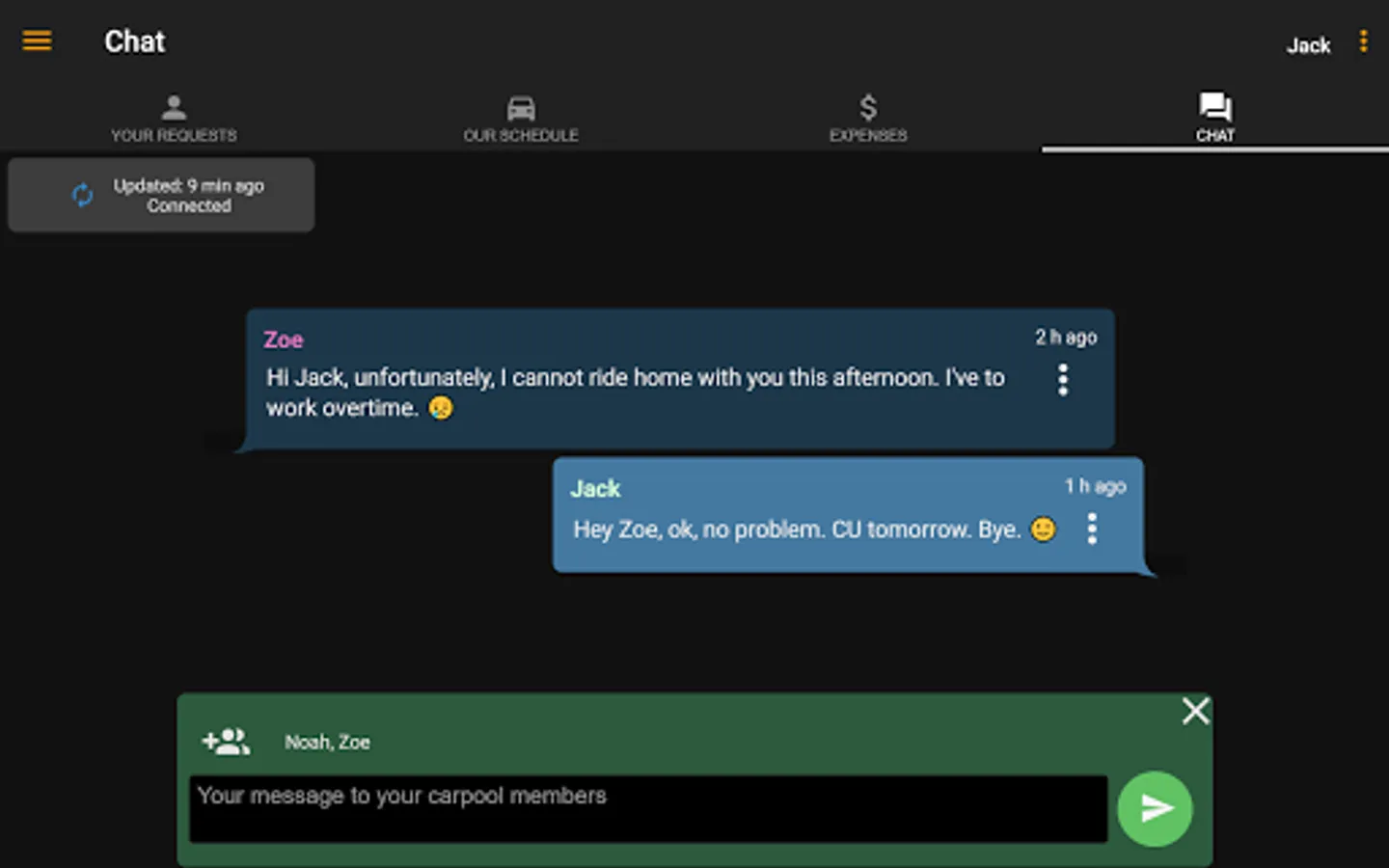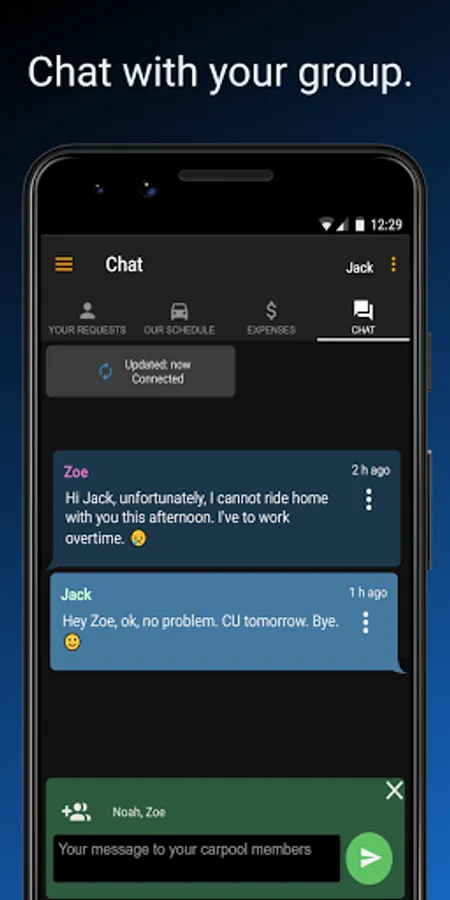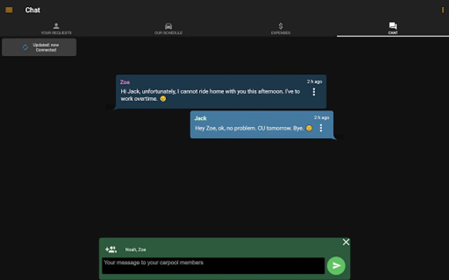 • Each member of the carpool can change the data of their group, so that it’s no problem if riders don’t have a mobile device or if they are slow updating their data.