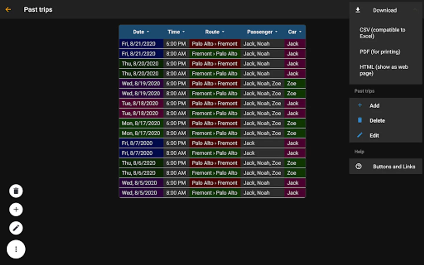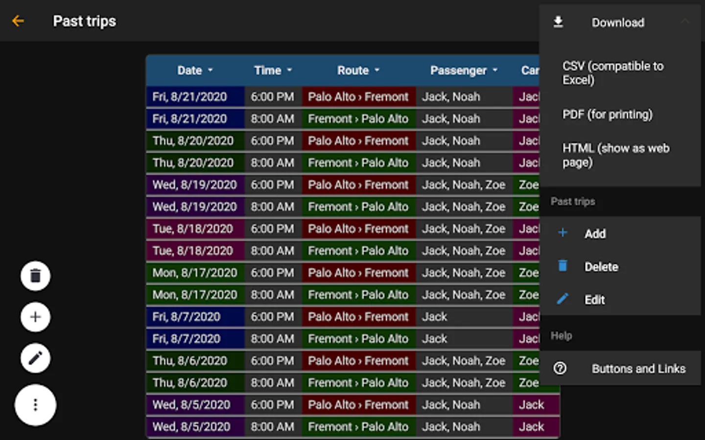 • Possibility to modify data of past trips to correct the passenger list or adjust costs.