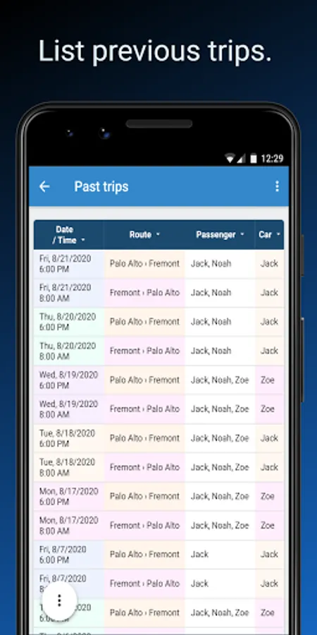 • Quick and easy selection of passengers and drivers.