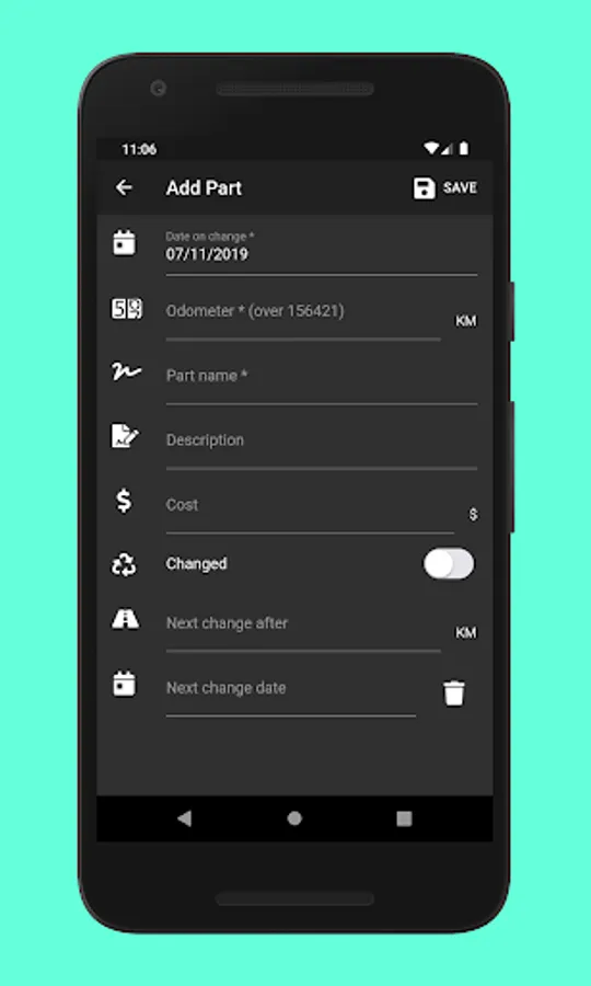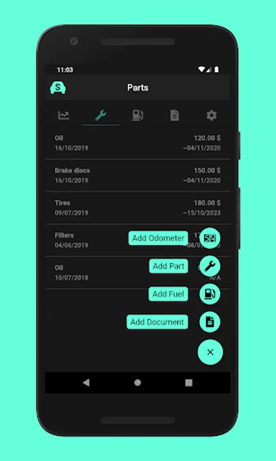 - track your part changes and repairs such as oil, tires, filters, etc.