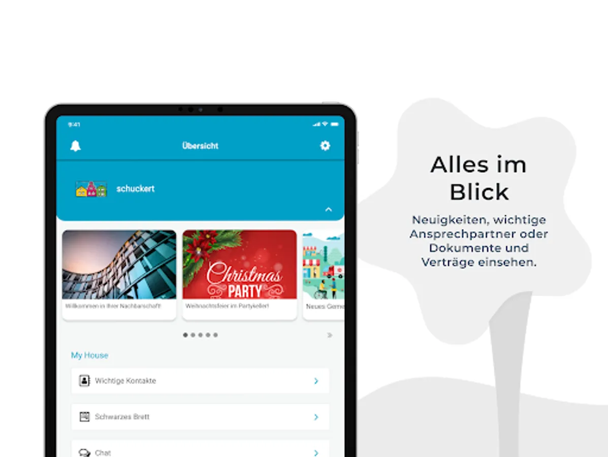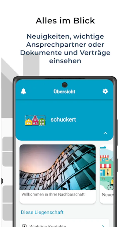 - Messages and appointments via push notifications, e.g. "elevator in the property is defective", "repair commissioned"