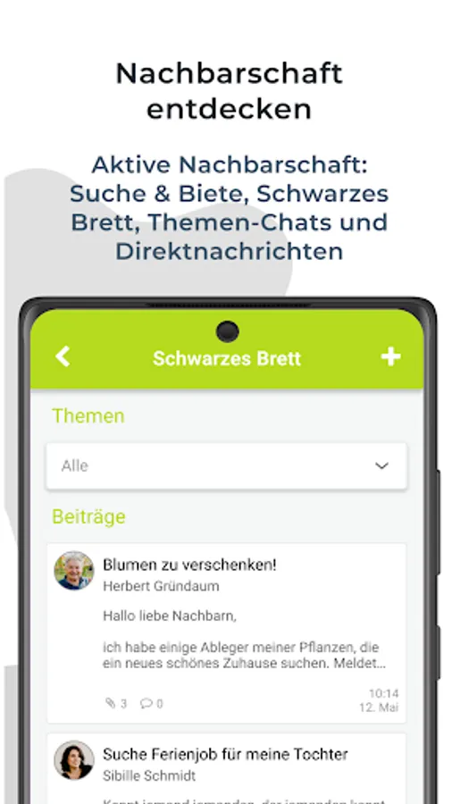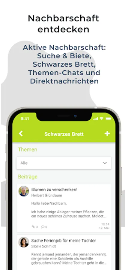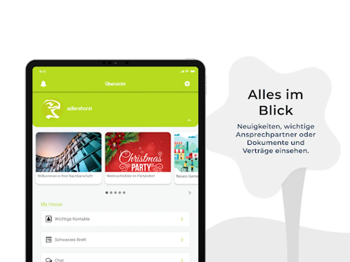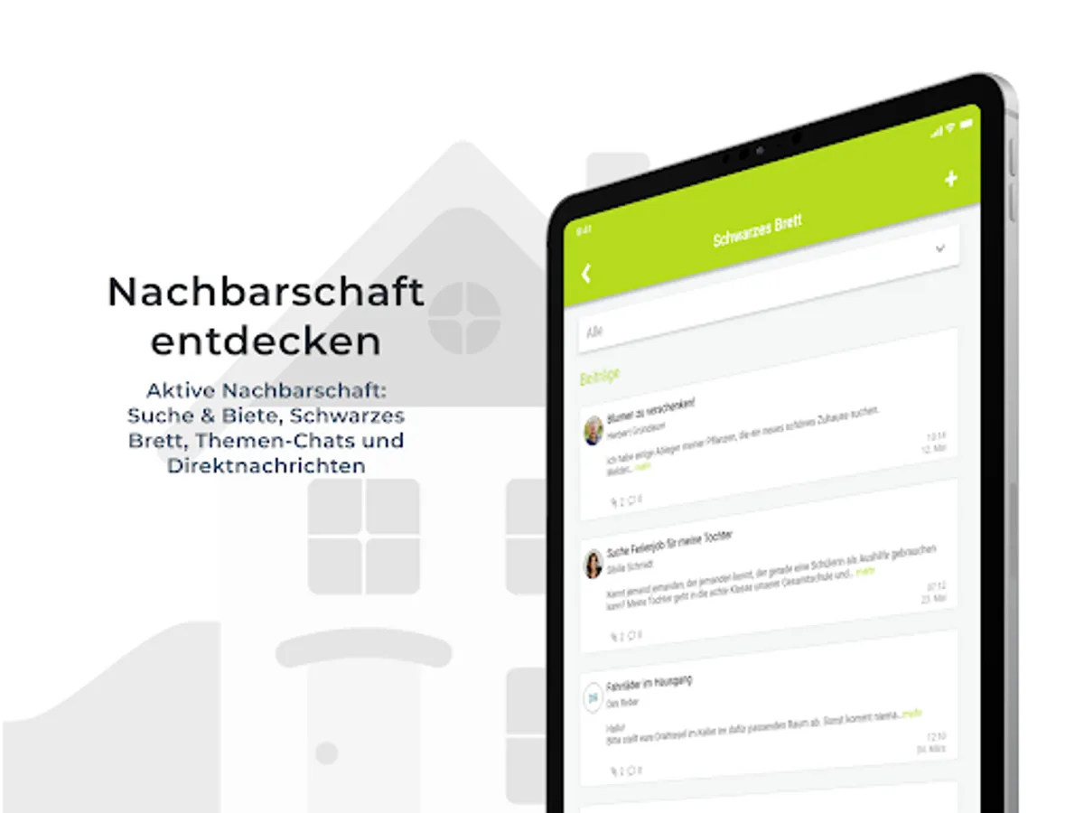 In our member app you will learn everything that makes you want to live. Sharing with neighbors via direct message on help, flea market bargains and events. Let us inform you about messages from your property supervisor. And report damage easily with just a few clicks directly from your smartphone.
