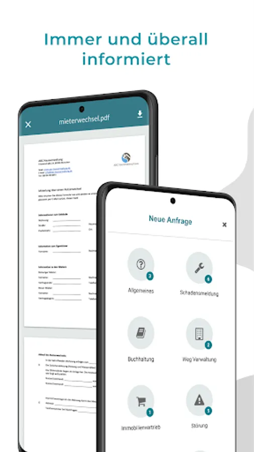 Simply take a photo and report damage to the apartment and building in just a few minutes - no tiresome phone calls or emails and you will always be informed about the status of your report.