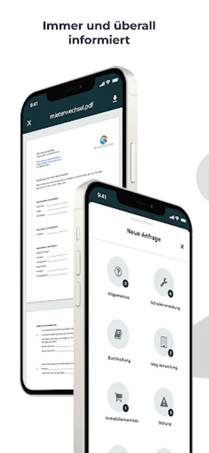 - Send service requests damage reports Services directly via smartphone including photos to the relevant people
