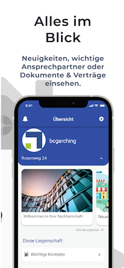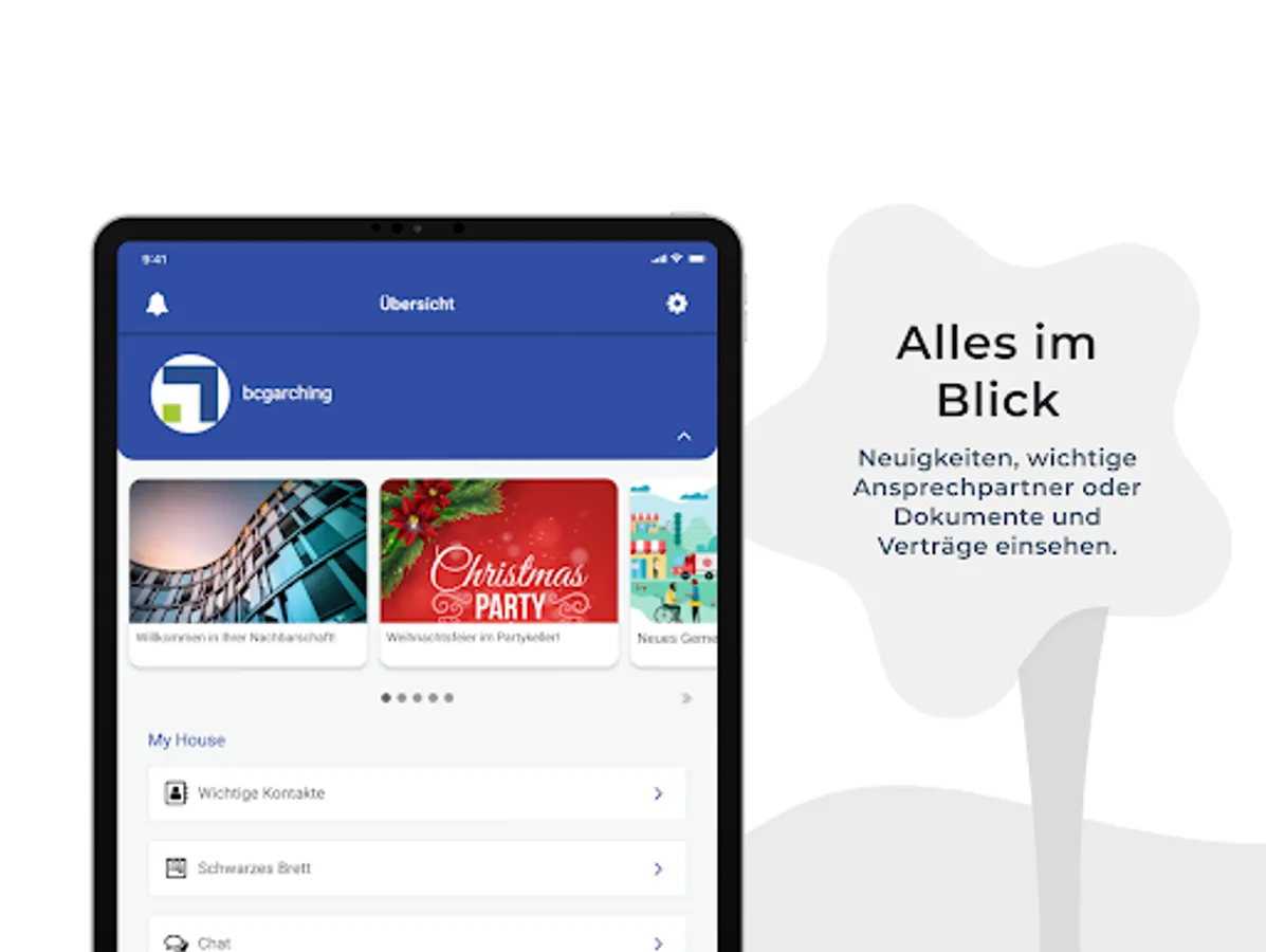 With our app, you can easily start a regular exchange about your rental space. You can communicate directly with our management team 24/7 about all matters relating to your property, receive notifications, notifications and appointments, view documents, call up invoices, report damage, communicate with fellow tenants via the “bulletin board”….