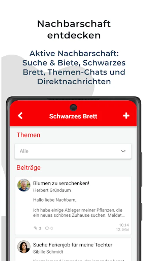 - Wanted ads and offers (e.g. babysitter wanted, garage space for rent)