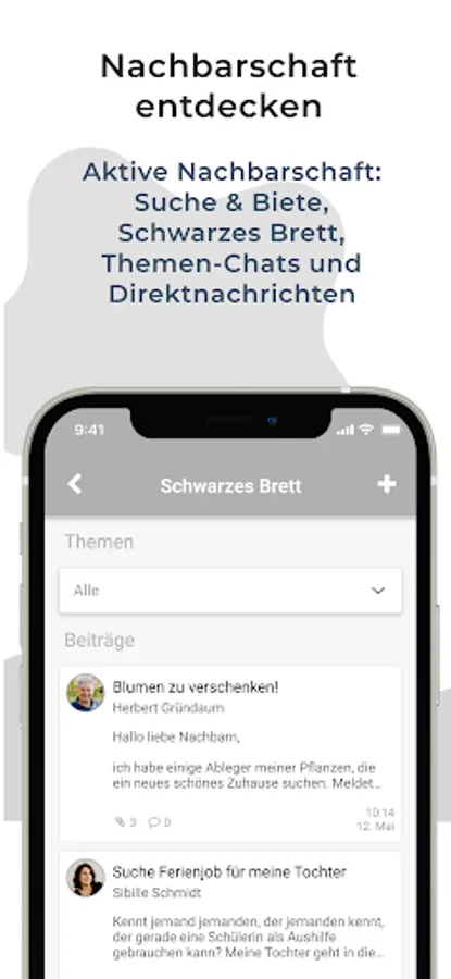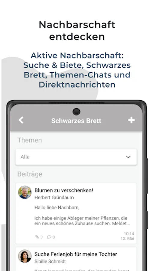 - Wanted ads and offers (e.g. babysitter wanted, garage space for rent)