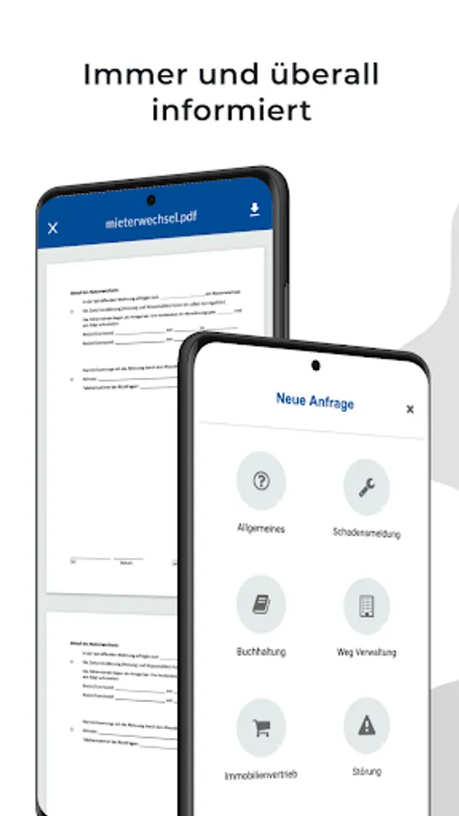 The advancing digitization does not stop at our own four walls - and that's a good thing! Because smart solutions not only optimize operational processes, but also significantly improve the use and value retention of the properties. With our IMV app, you as the owner and resident have direct access to all important information about your property. Whether documents, appointments or notifications from property management - everything can be called up quickly and easily online. Direct communication with the property management also makes it easier for you to exchange information and concerns. Experience living in a new way - with our mobile app for owners and tenants.