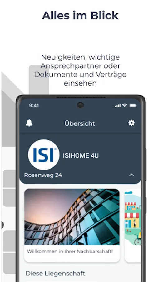 Welcome to ISI Building Management GmbH. This app gives you access to functions and data about your apartment: