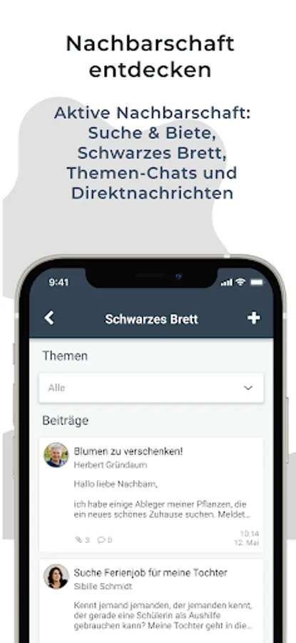 - Wanted ads and offers (e.g. babysitter wanted, garage space for rent)