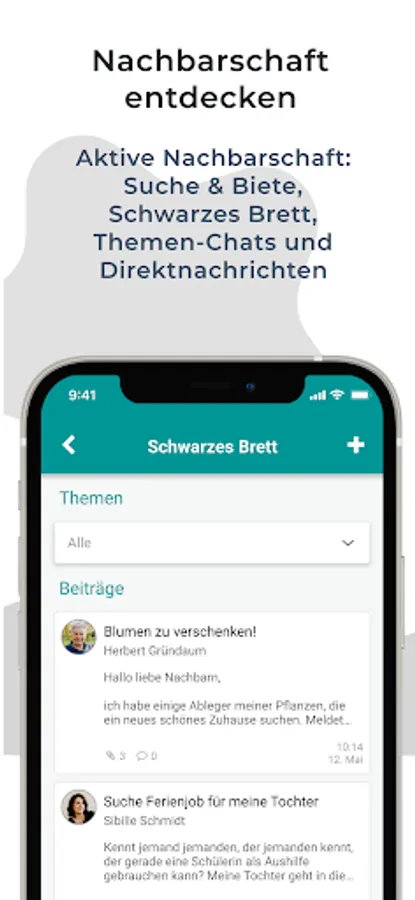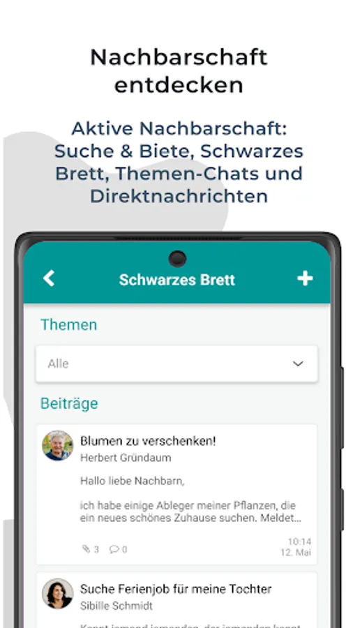 The app offers you the opportunity to network with your neighbors and exchange ideas through the community area. You can plan and organize joint ventures, campaigns or events here. In order to expand the network accordingly, you will also find entries and information on other offers related to your home, such as information from various cooperation partners or retail.