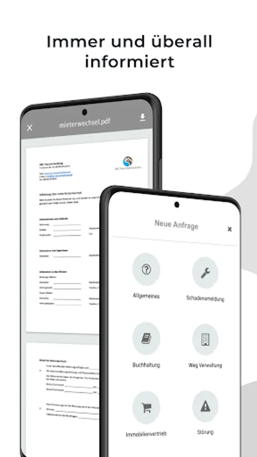 - send service requests, such as damage reports or concierge services directly via smartphone including photos to the relevant people
