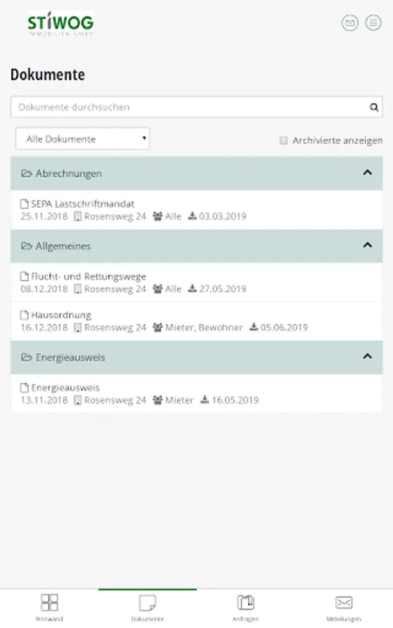 Welcome to the digital world of STIWOG Immobilien Ges.m.b.H! Here you will get all the relevant information about your property!