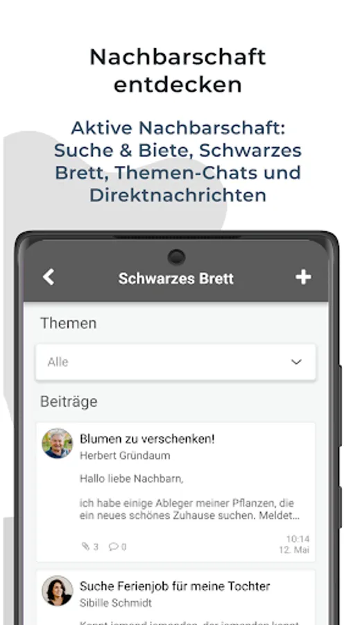 - Wanted ads and offers (e.g. babysitter wanted, garage space for rent)