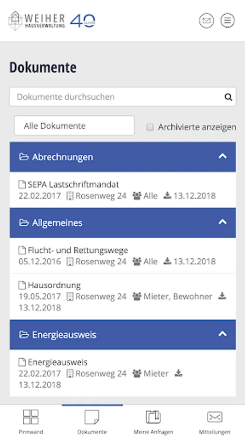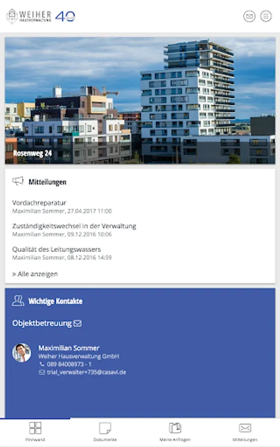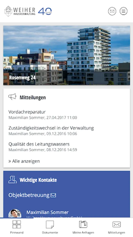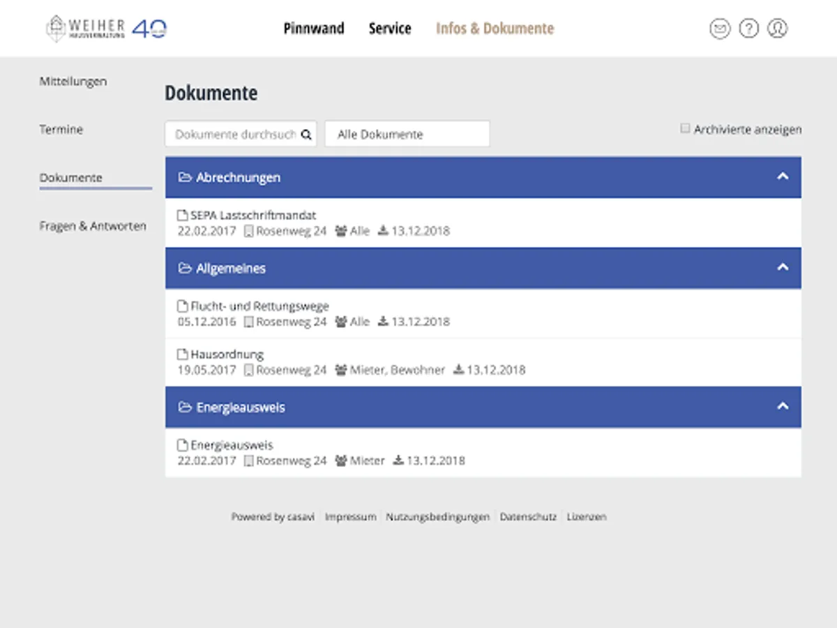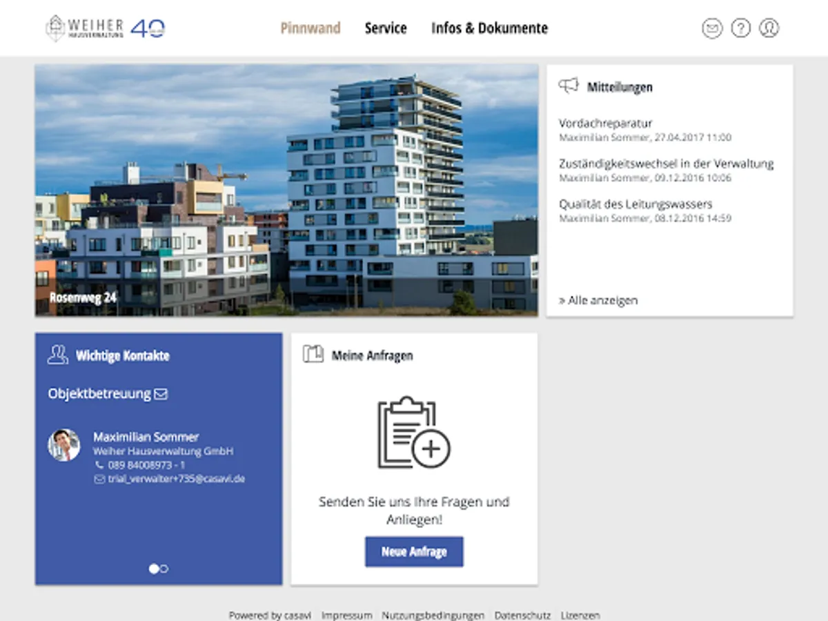 Welcome to the digital age of the WEG administration. With the help of the customer portal, we now offer all co-owners of owner-managed communities our own digital information and service area. Whether by mobile phone, tablet or PC: You have all the important information about your property always at hand and can contact us outside of our office hours.