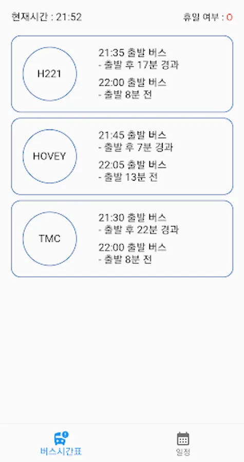 You can check two day, three day, and four day schedules and manage your personal schedule.