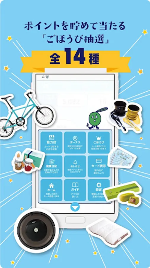 You can participate in the "Reward Lottery" for each rank up of My Chare Card. There are lots of wonderful prizes such as Kagawa prefecture's special products and health items.