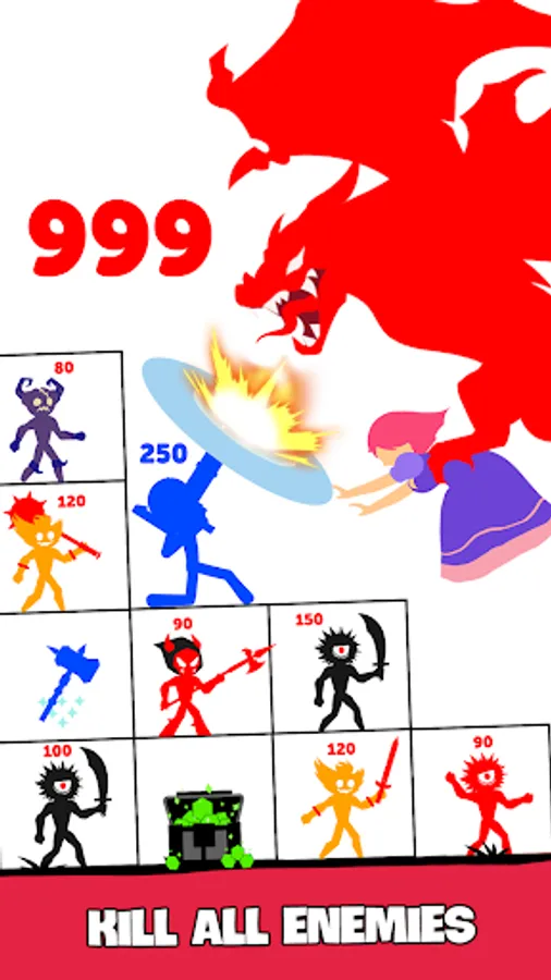𝗦𝘁𝗶𝗰𝗸 𝗙𝗶𝗴𝗵𝘁: 𝗘𝗻𝗱𝗹𝗲𝘀𝘀 𝗕𝗮𝘁𝘁𝗹𝗲𝘀 is a role-play with a mix of puzzle game where you control a mighty stick hero who must fight off hordes of enemies and defend your tower from destruction.