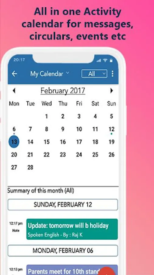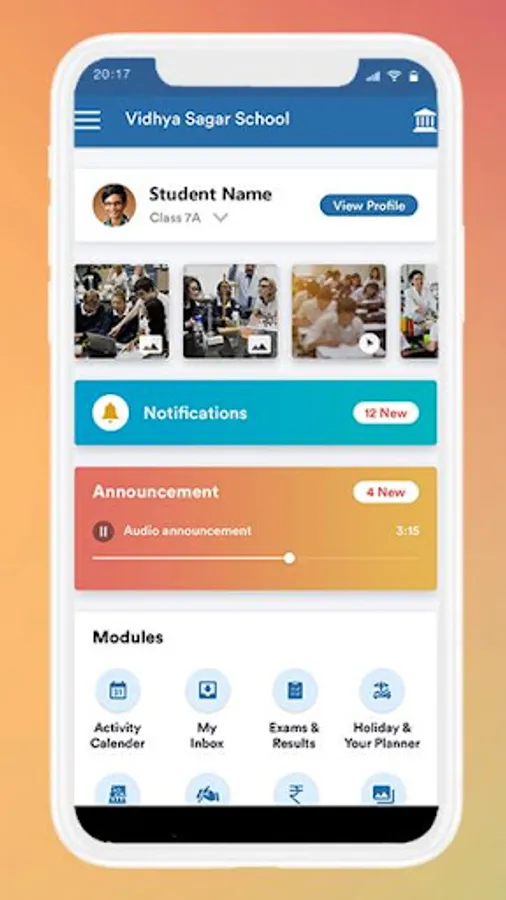 A Pool between Student, Parent, Teacher & Admin :Online tests, spot results, Calendar, Live notice board, discussion and many more..