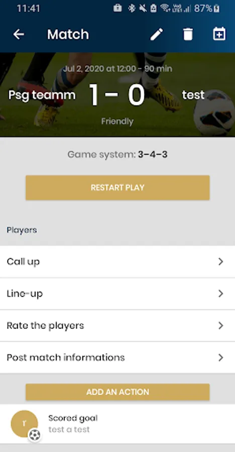 - Game: The entry of game events from the sidelines is a true added value. Cards, goals, assists, injuries, fouls.... you will not miss any other action of your games! Each event entered fuels your statistics and allows you to procede to a thorough analysis of your performances.
