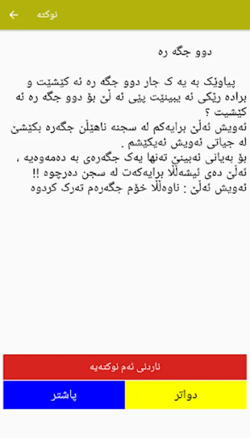 ئەگەر یەکێک لەم نوکتانەت بە دڵ بوو ئەوا ئەتوانیت راستەوخو بینێری بۆ هاوڕێکانت هەتا ئەوانیش لەگەلتا پیبکەنن و هەموومان پێکەوە پێبکەنین و ئەگەر بۆ ساتێکیش بێت دوور بین لە خەم و جەنجاڵی ژیان و کەمێک پشوو بدەین و خەمەکانمان بڕەوێنین