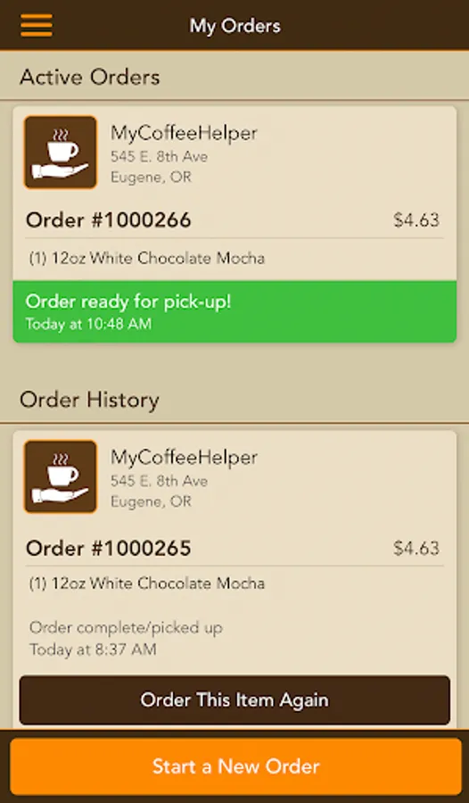 MyCoffeeHelper partners with local coffee shops in your area to provide a quick and easy mobile ordering experience. Save time, order ahead!