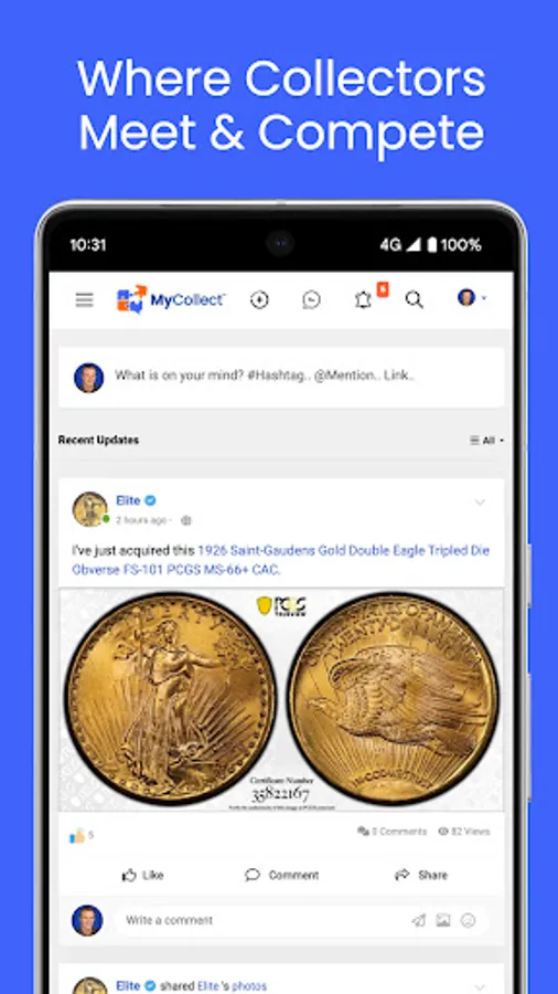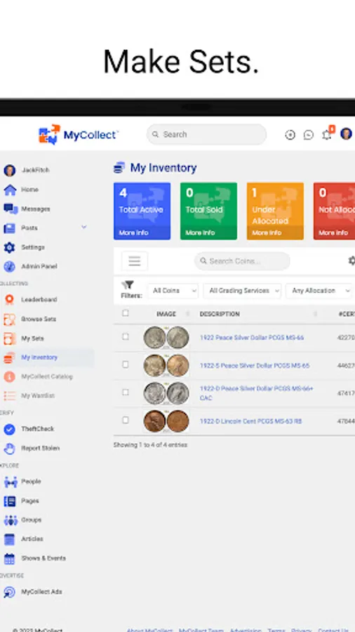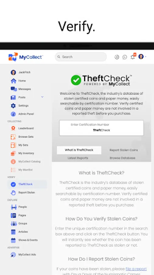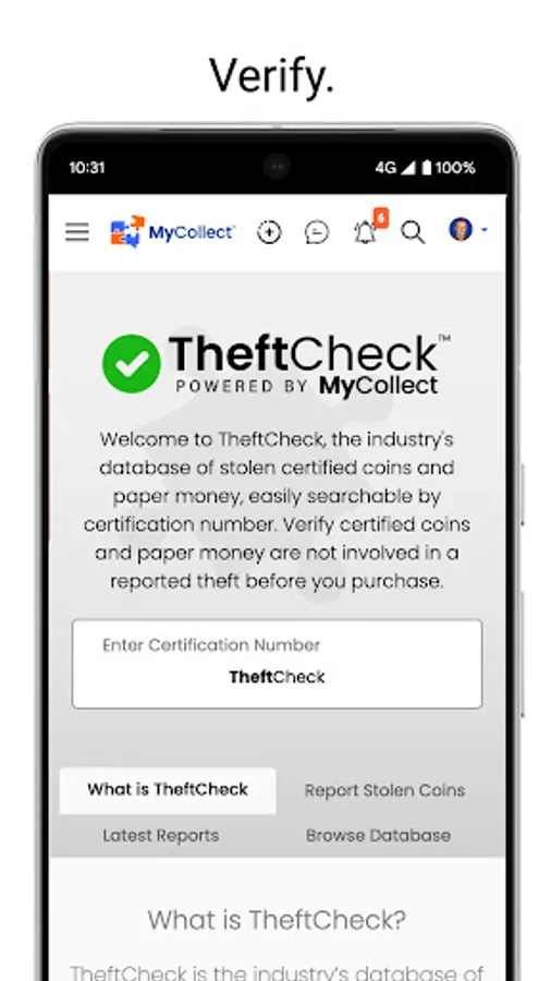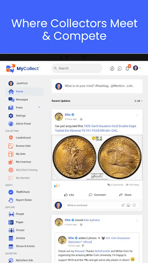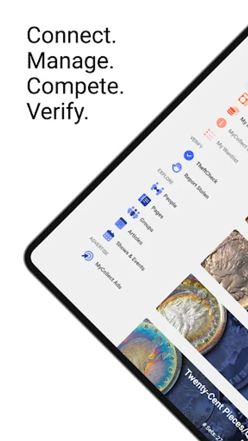 Welcome to MyCollect, a social media platform that focuses on coins and collectibles. Interact with your fellow collectors and dealers, read the latest industry news, manage your inventory, build sets and compete with peers. MyCollect is also the home of TheftCheck, the industry's centralized database of stolen coins, easily searchable by certification number.