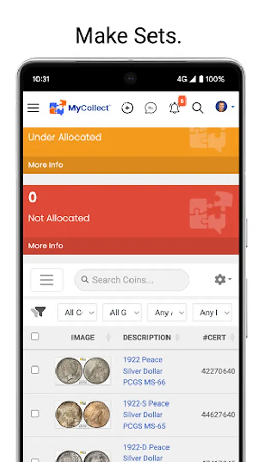 * MyCollect Sets - Add your coins and paper money to competitive sets and compete with other collectors