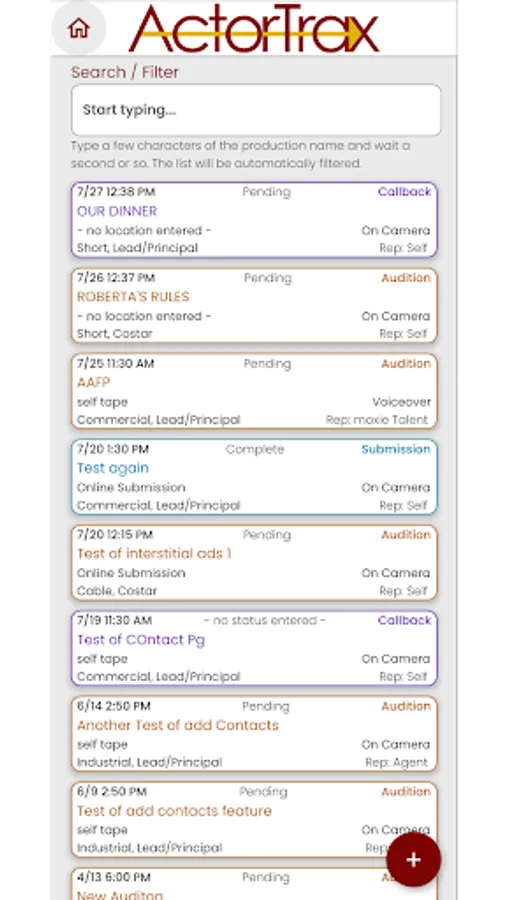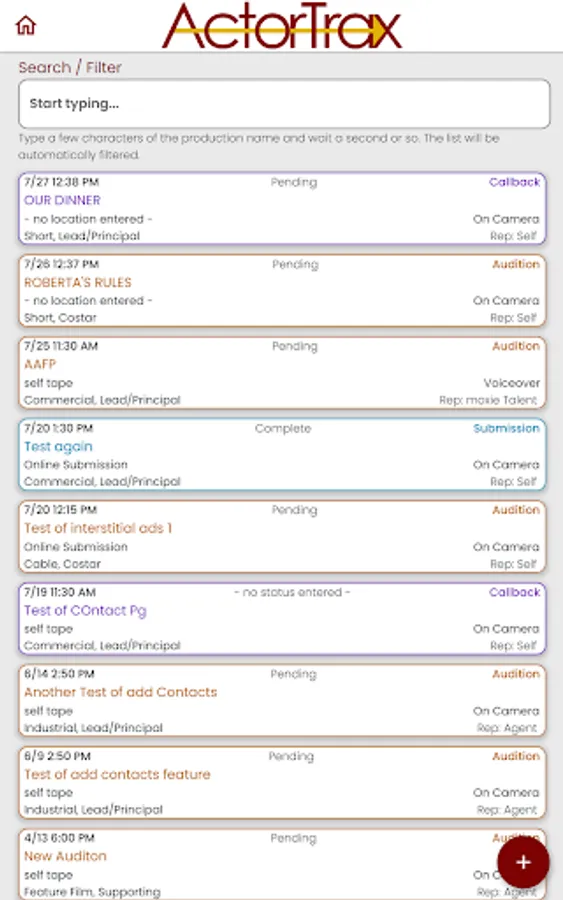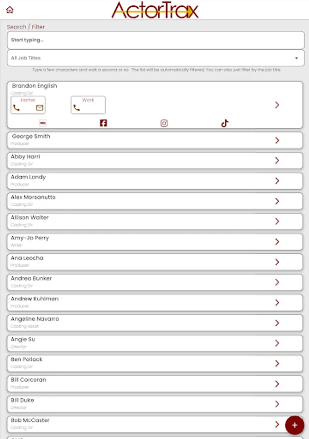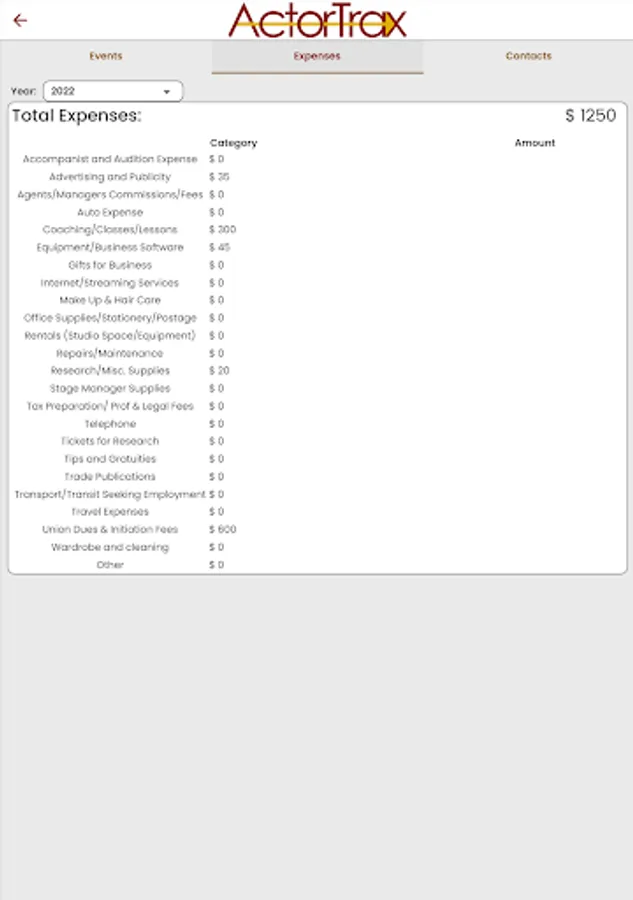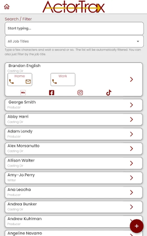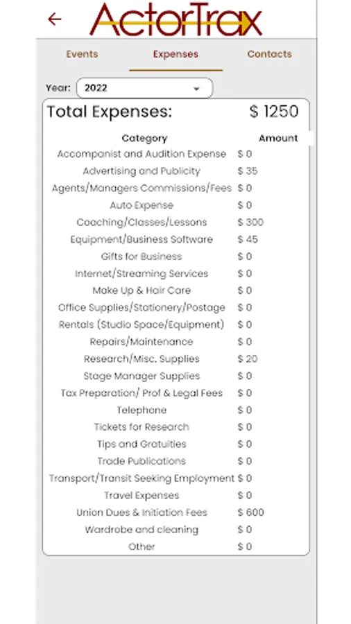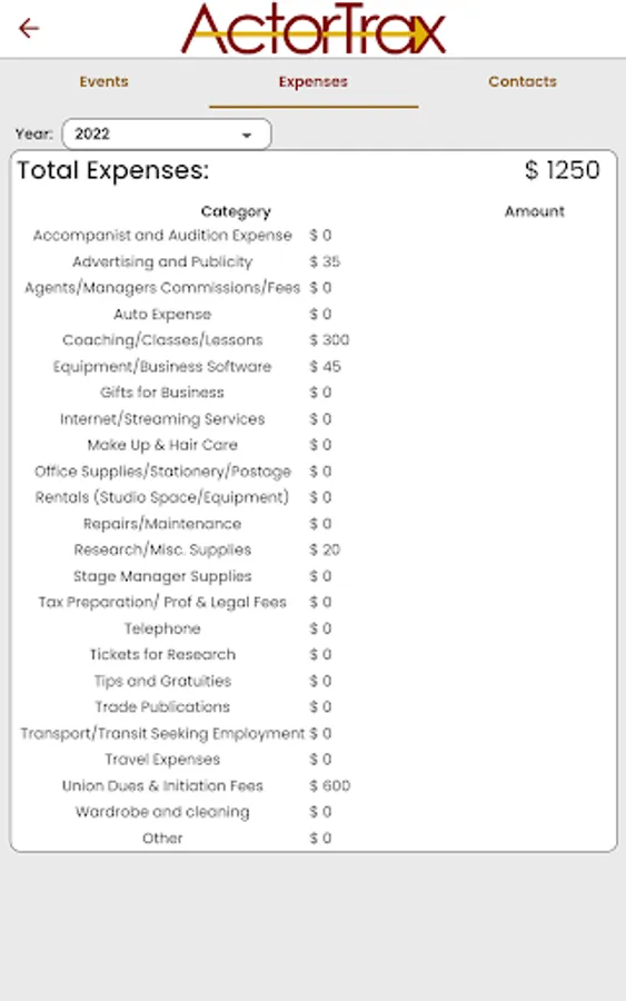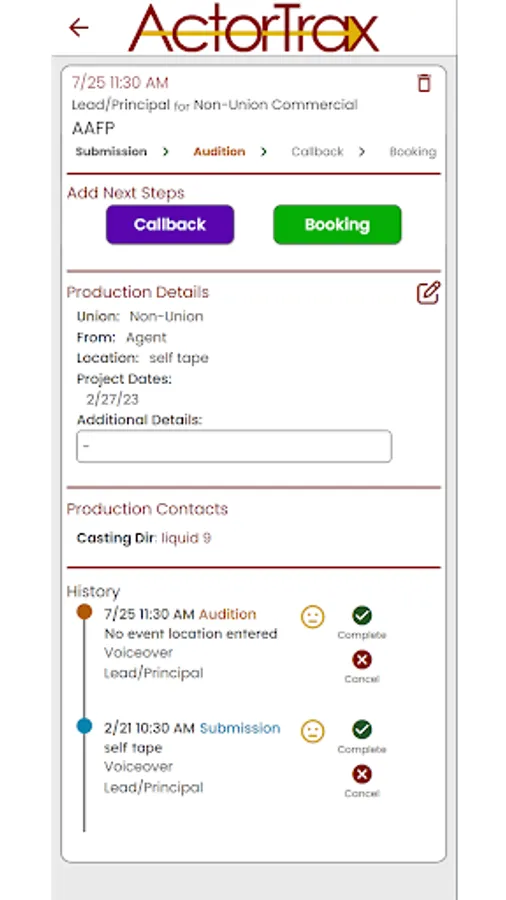 With a few taps, ActorTrax logs your progress from submission to booking, your industry contacts, and your expenses.