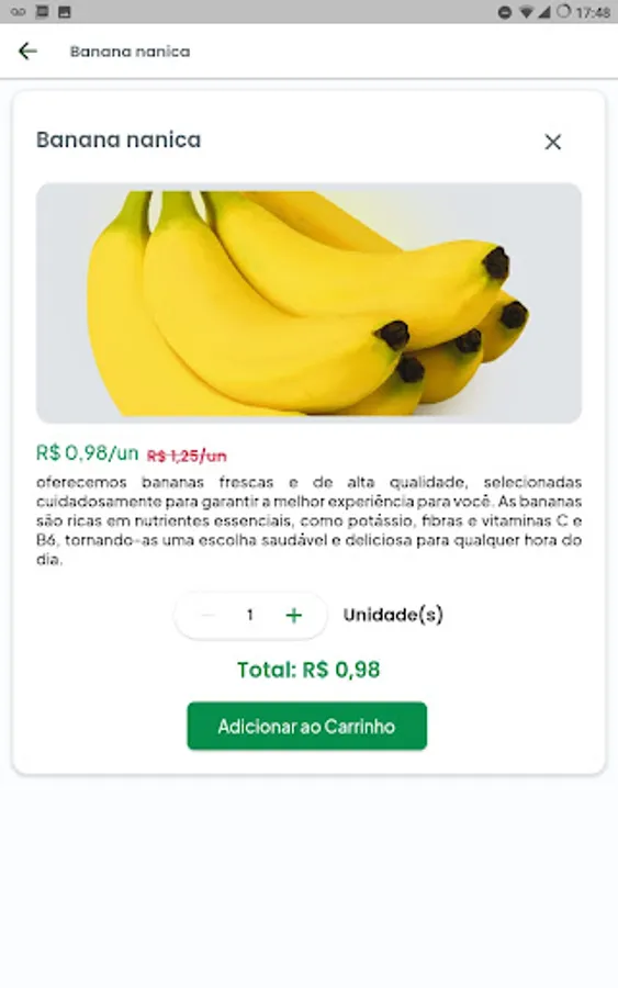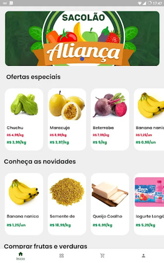Experience the new way of shopping at Sacolão Aliança! Our application offers convenience and speed for you to order fresh fruits, vegetables and natural products. Browse our comprehensive catalog, add the desired items to your cart and choose your payment option. Our goal is to offer a simple and convenient shopping experience, so that you can enjoy the best products, straight to your table. Download now and discover the practicality of ordering online at our hortifruti.