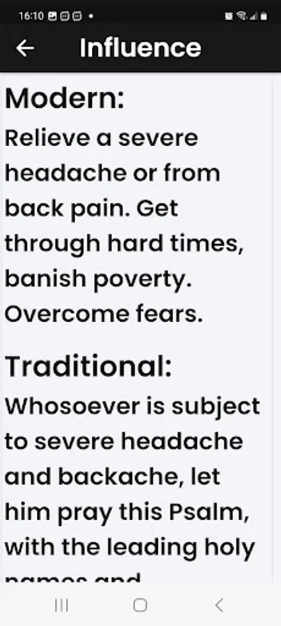Also, for legal reasons I will say that this app is for entertainment. If the traditional use states that it is used to heal a condition, it might heal it, but it might not. You should seek medical advice from a licensed doctor. Psalms magick should be used to compliment a "real world" physicians’ advice. Not to replace it.