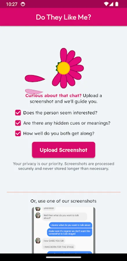 Note: Your privacy is our priority. Screenshots are processed securely and are never stored longer than necessary.