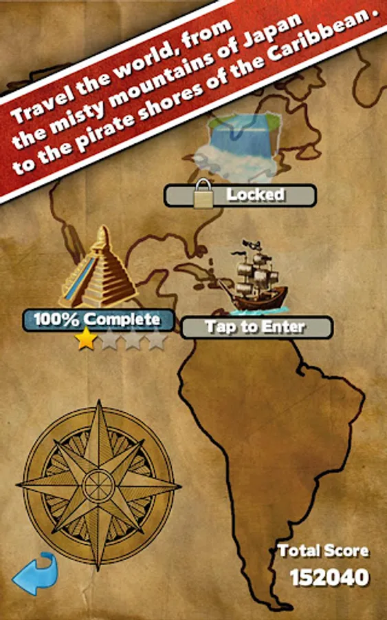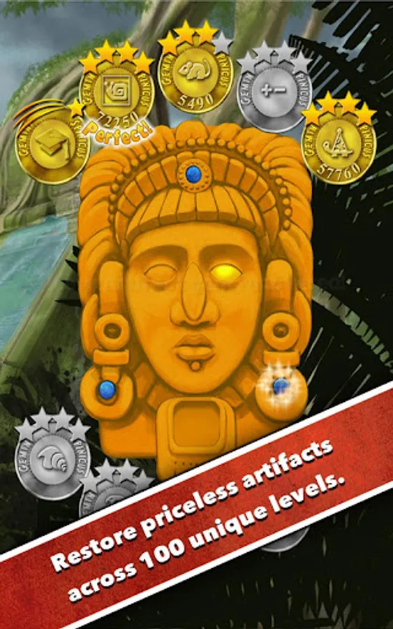 Across the globe, priceless artifacts are missing their gems. As a world explorer and gem-matching master, it’s your job to visit exciting locations like the Aztec jungle, the dunes of Egypt, and the pirate shores of the Caribbean to find the missing gems and restore the artifacts. Shoot for up to 4 stars on every level and try to clear the board to earn the elusive “Perfect” play award. Complete the levels at each destination to unlock all-new puzzle levels for a completely new game play challenge.